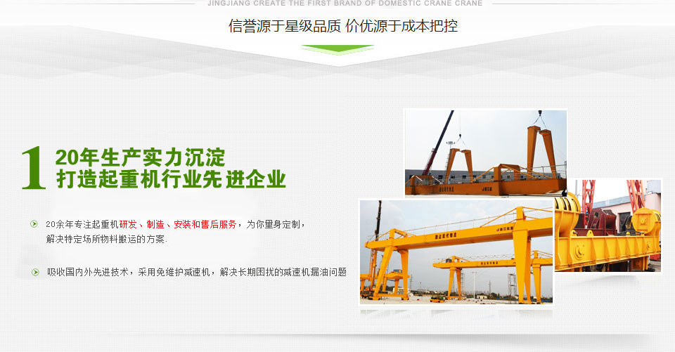 靖江市起重設(shè)備廠家直銷懸臂起重機(jī)、固定式懸臂起重機(jī)、單雙梁橋式起重機(jī)、簡易門式起重機(jī)、電動葫蘆門式起重機(jī)型號齊全,價格合理 - 座落在美麗富饒的江浙平原,魚米之鄉(xiāng)--江蘇省靖江市,位于長江之濱。毗鄰江陰長江公路大橋, 與江陰、張家港隔江相望,緊鄰上海、南京、蘇州、無錫等發(fā)達(dá)的大中城市,經(jīng)濟(jì)環(huán)境和地理位置得天獨(dú)厚。 緊靠京滬、寧通高速公路 公路和水路交通極為便利。